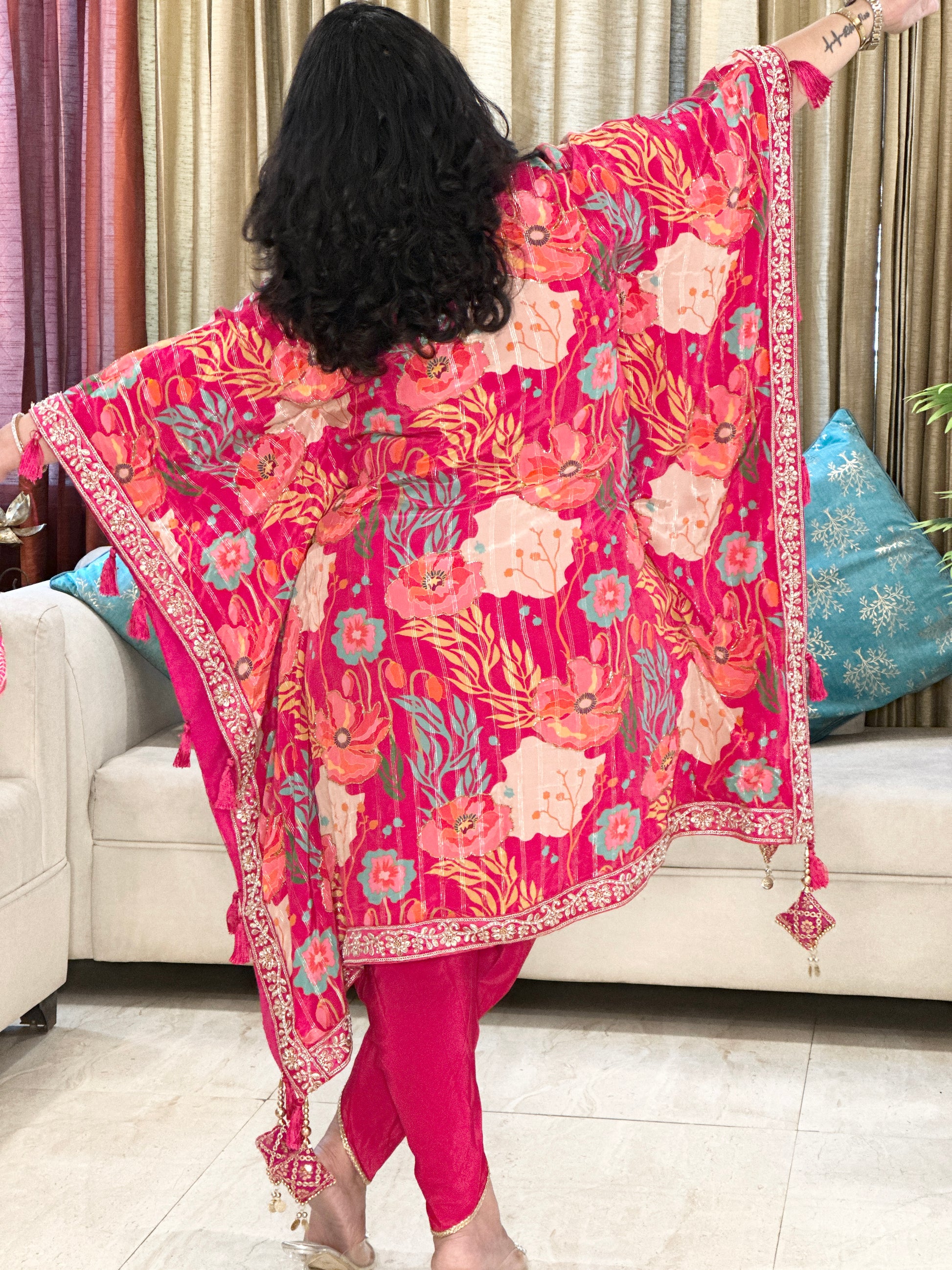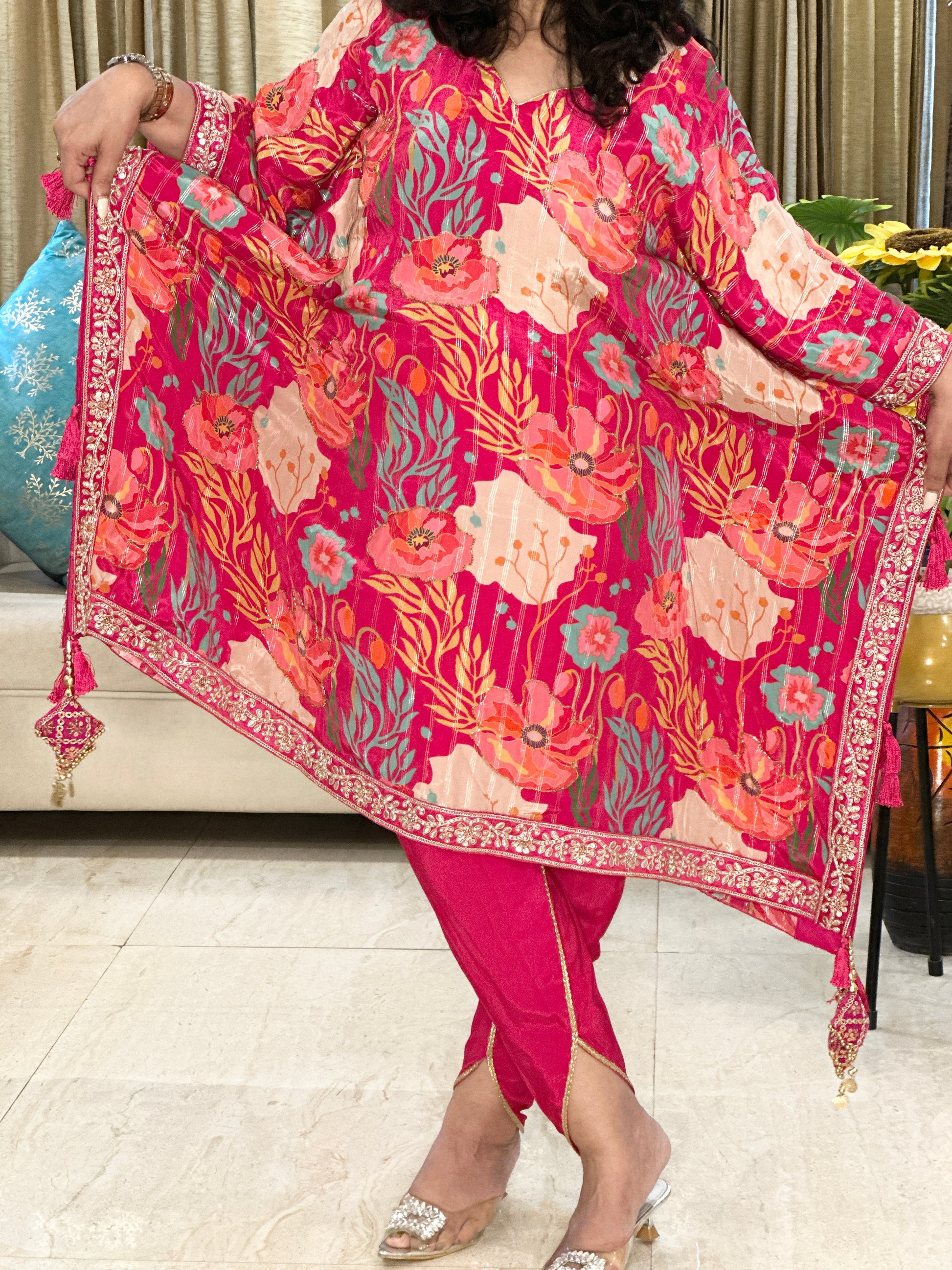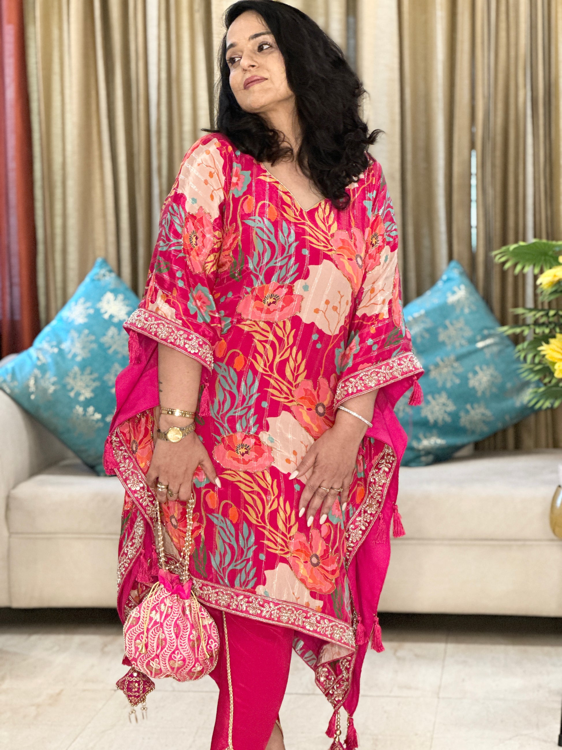 This outfit is a Kaftan-style Kurta with tulip Pants.