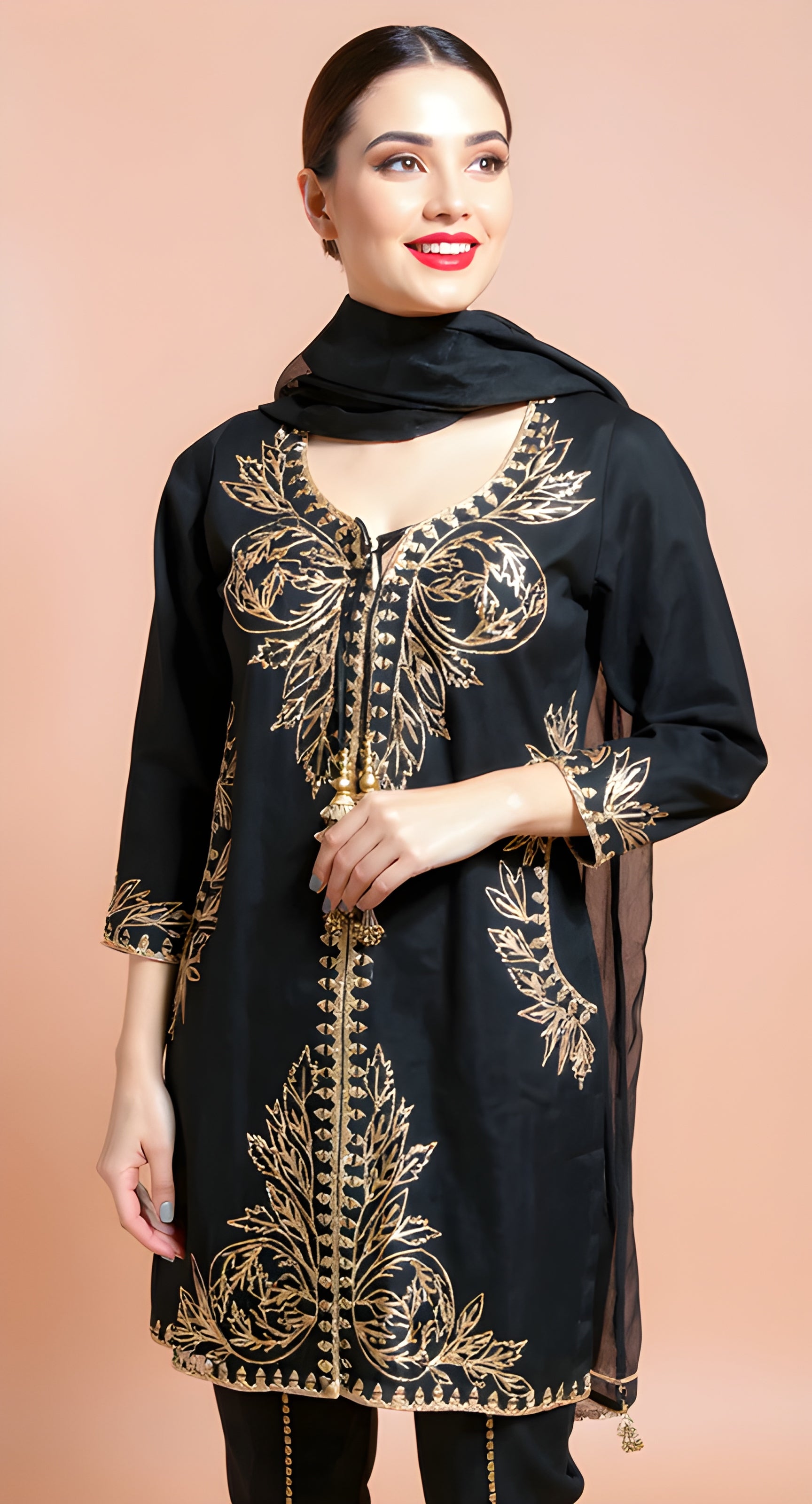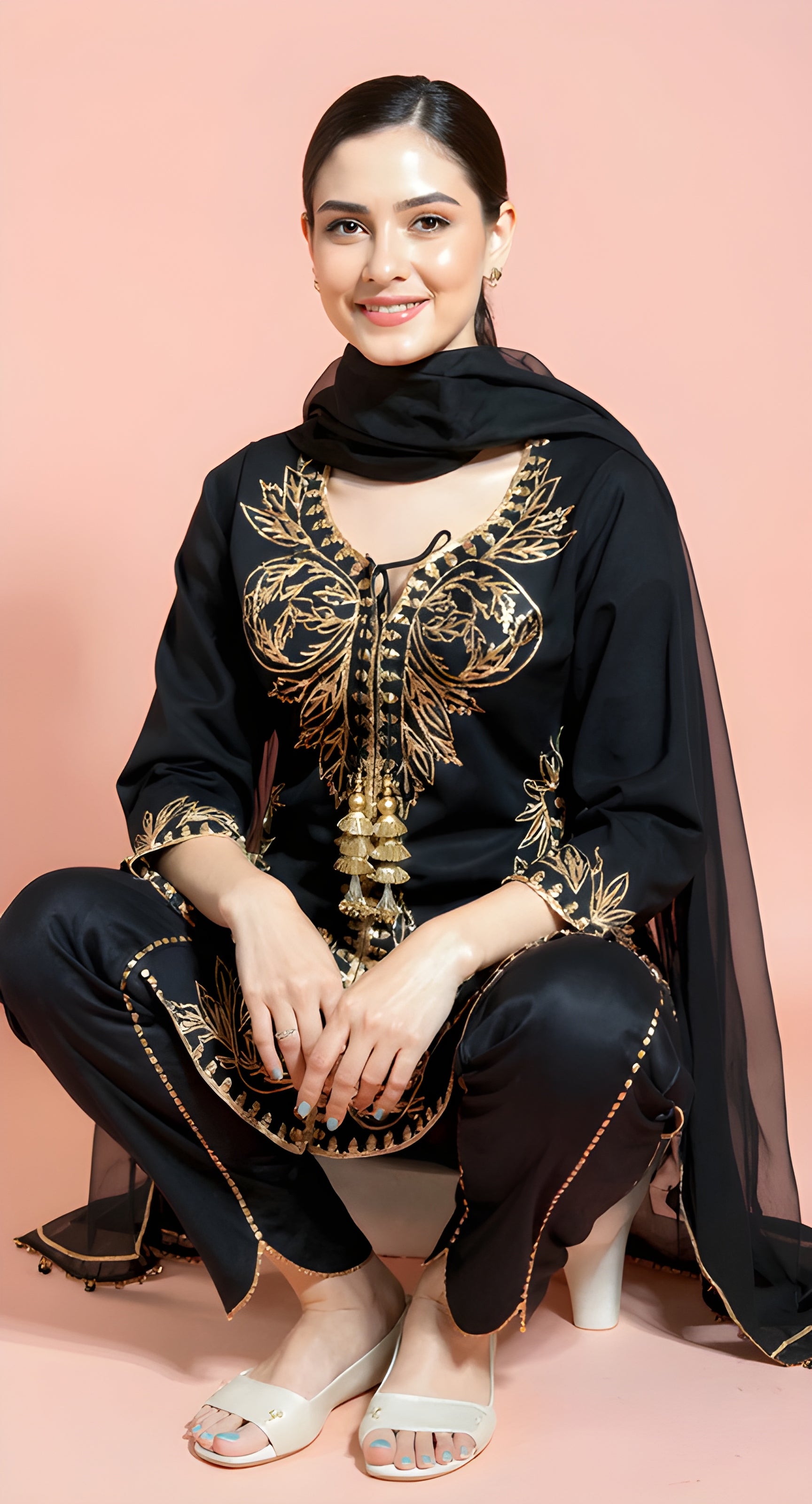 The Ravan outfit combines traditional craftsmanship with modern design to offer a sophisticated and durable ensemble. Tailored from high-quality materials, it provides both comfort and a refined appearance suitable for formal and cultural occasions. Its precise cut and thoughtful detailing showcase expert workmanship, ensuring the wearer presents a polished and confident look.